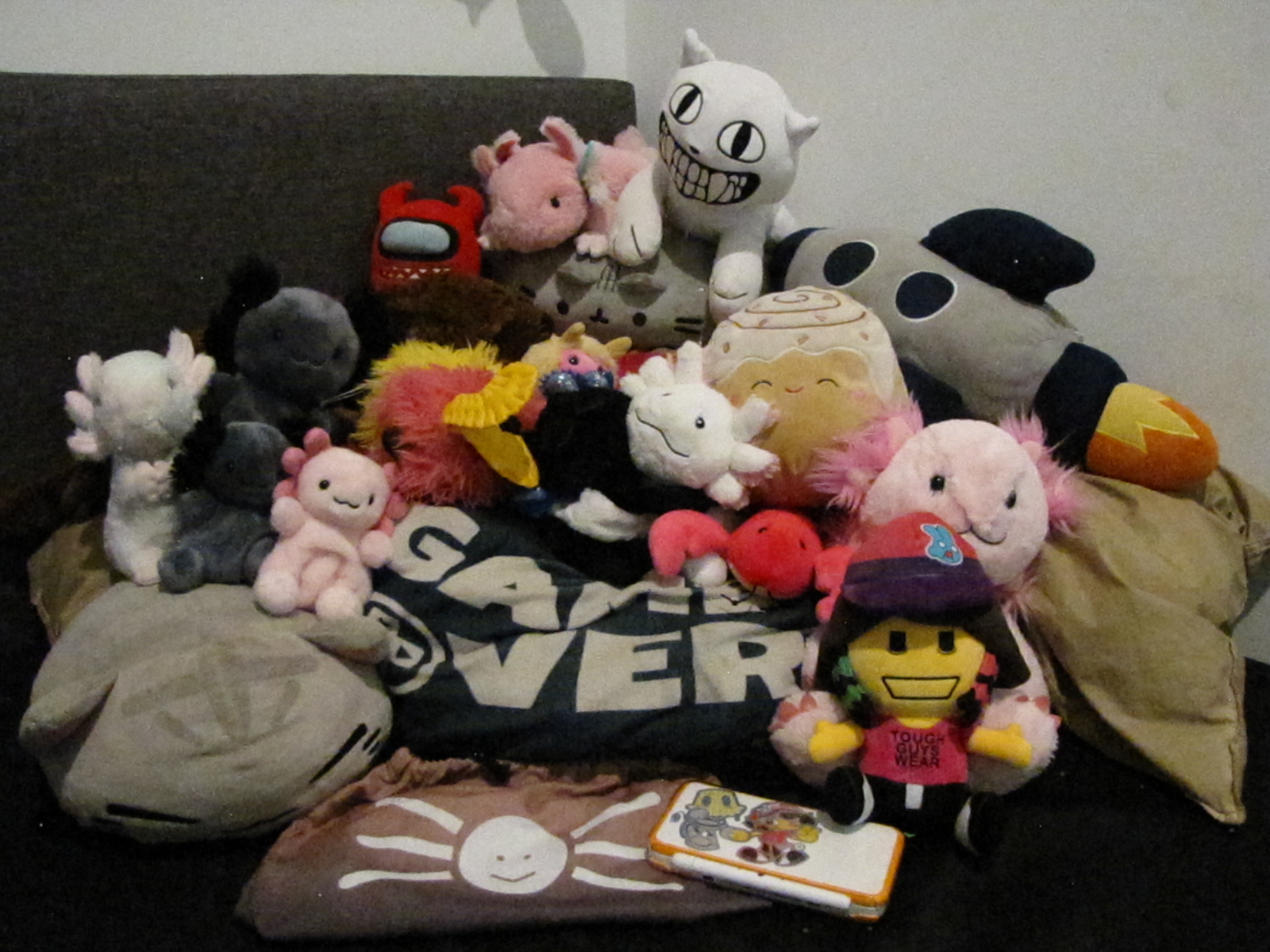 i love my plushie collection!!! look at my plushie collection!!!! i have so many :) i collect axolotls!